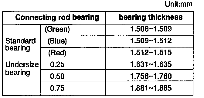 21. If oil clearance exceeds maximum oil clearance specification, grind the crankshaft and use undersized connecting rod bearings.