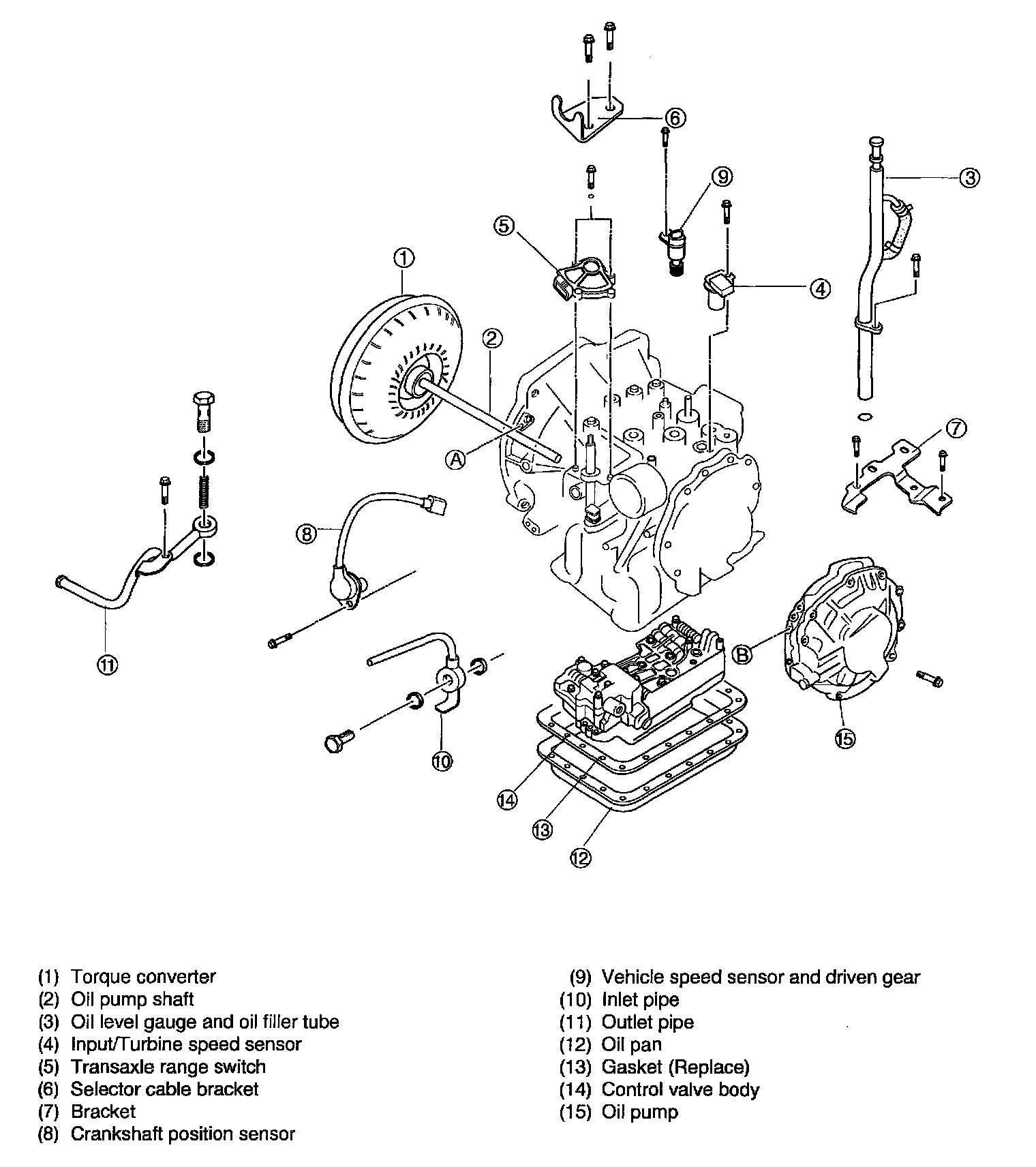 Notice: Remove oil pan before turning transaxle over. This will ensure that any foreign material remains in pan.