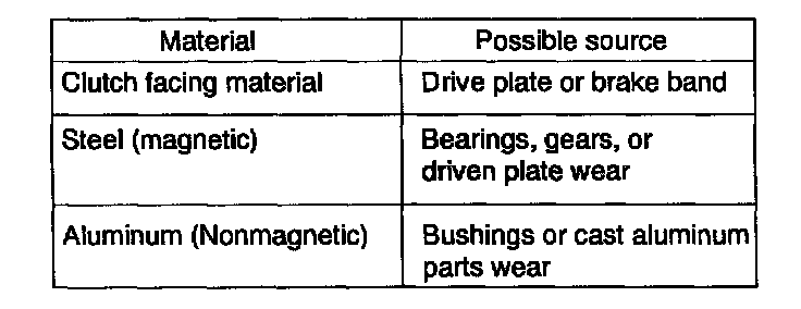 a. Examine any material found in pan or on magnet to determine condition of transaxle.