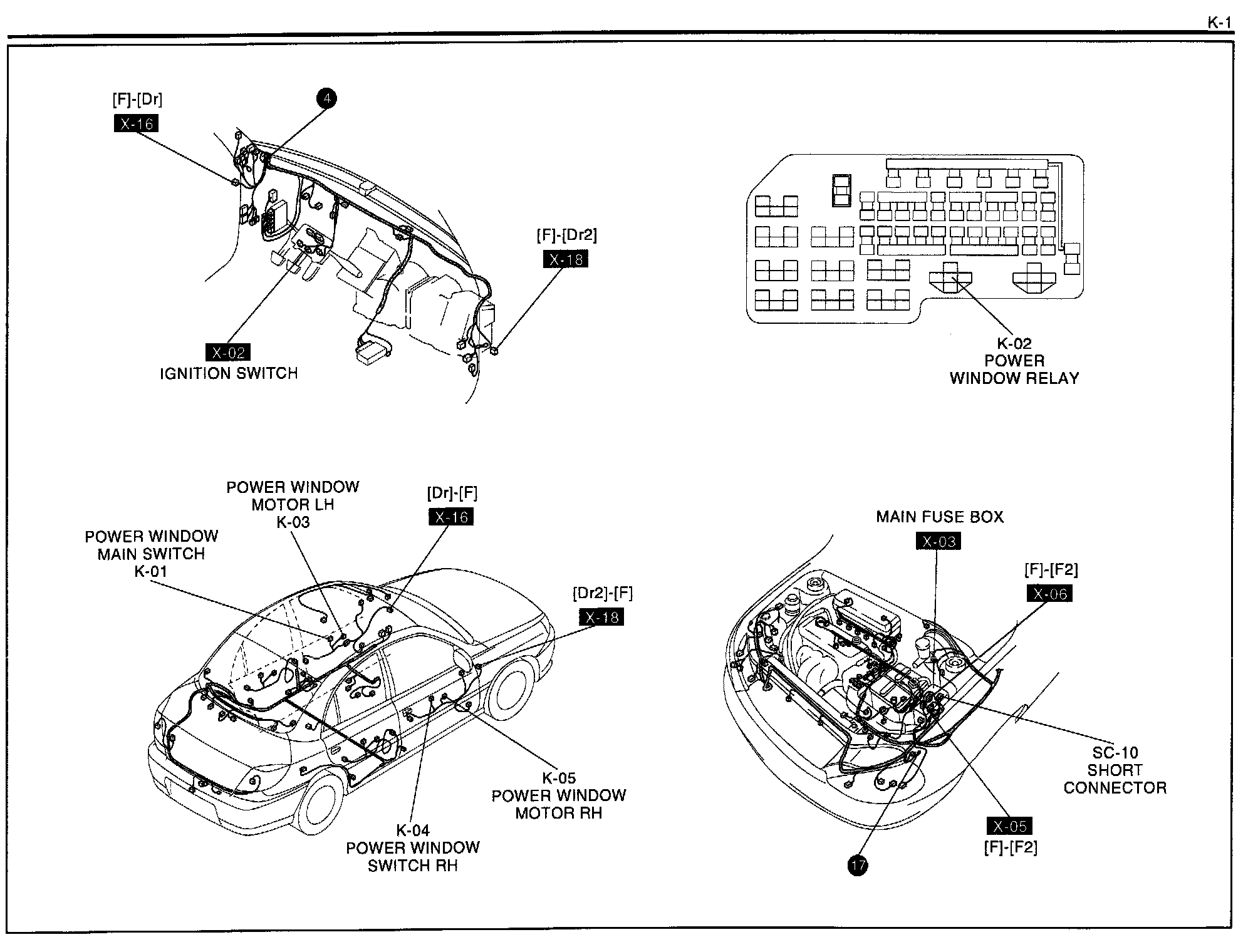 K-2b - Power Window System (4 Button) Harness/Connector Symbols:
