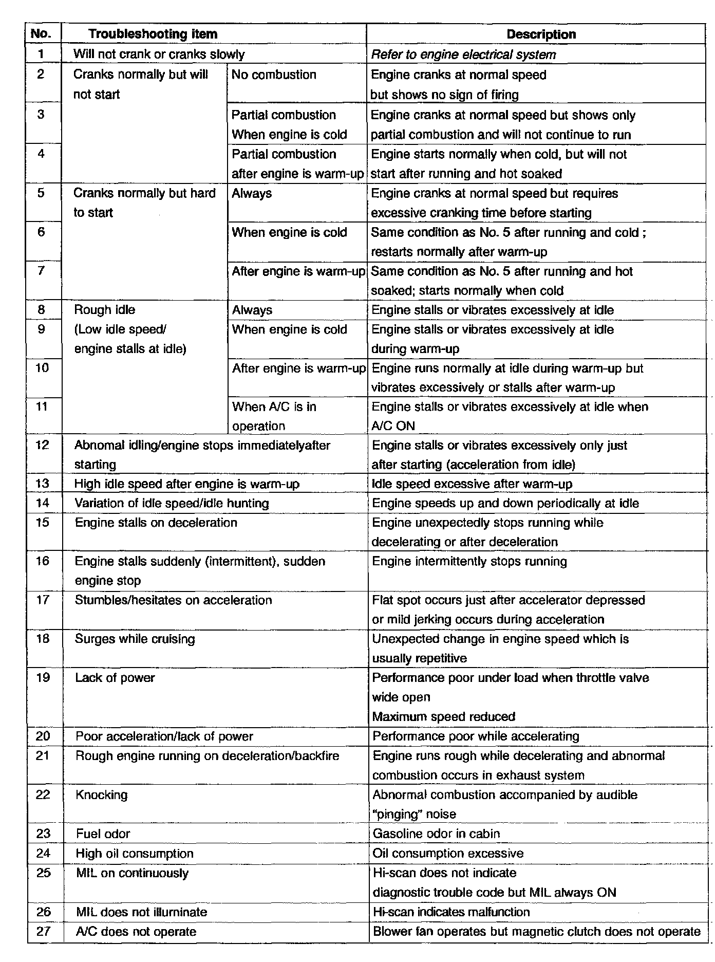 Hesitation: Delay in increase in engine speed occurring just after the accelerator pedal is depressed.