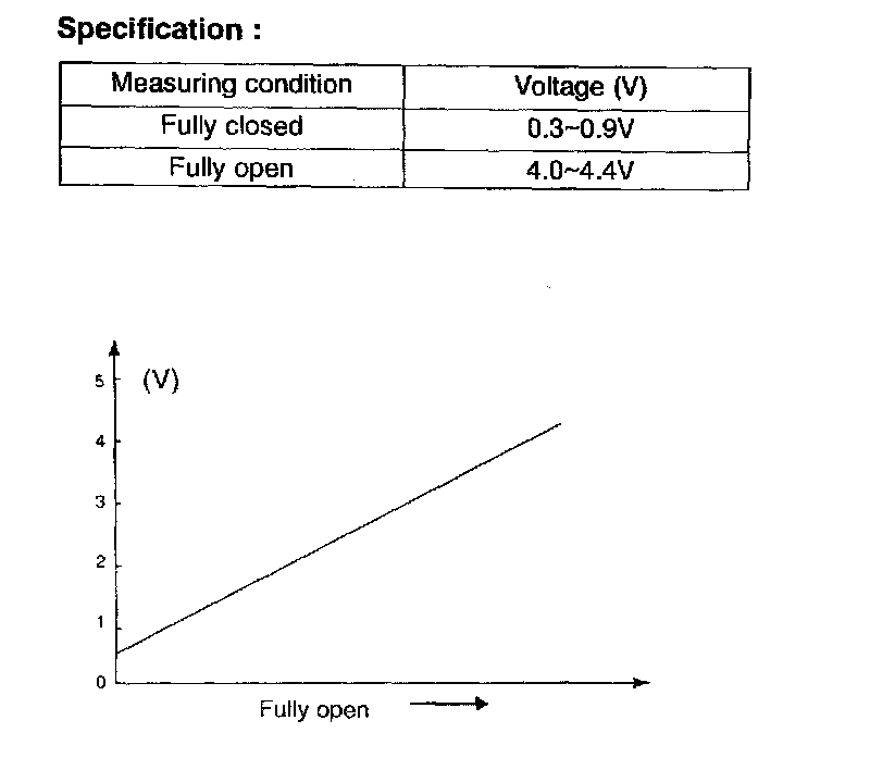 5. Fully open throttle valve and verify that voltage at terminal 3 is within specification.