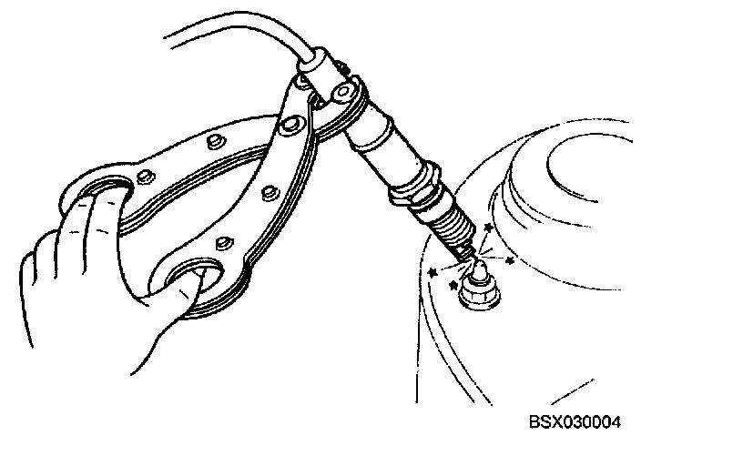 3. Hold spark plug with insulated pliers 0.2 to 0.39 inch (5 - 10 mm) from a ground.