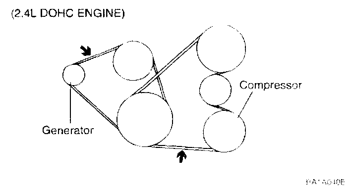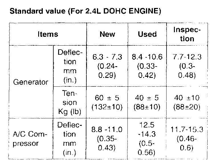 force to the backside of the belt between the pulleys as shown in the illustration, measure the amount of deflection Measure tension with a tension gauge.