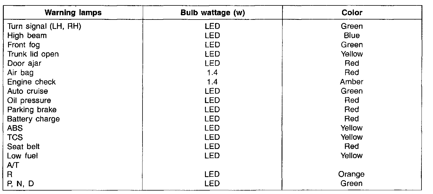 Instrument Panel, Gauges and Warning Indicators: Specifications