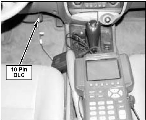 6. Connect Hi-Scan Pro to 10 pin DLC located under the dash near OBDII connector.