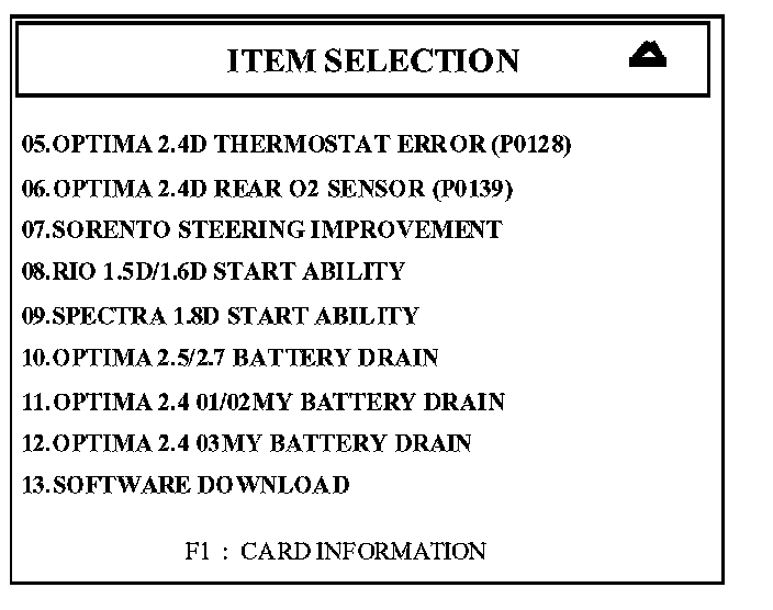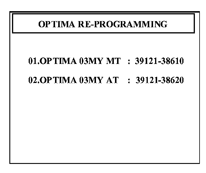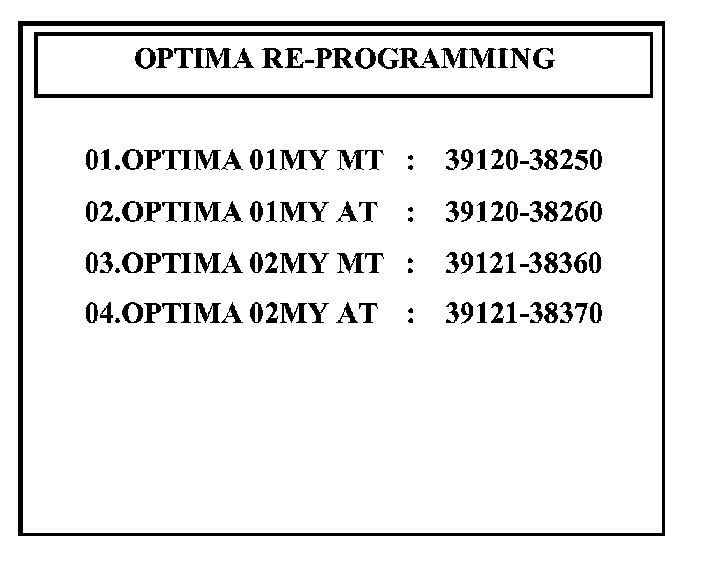 16. Select "02. OPTIMA 2.4D BATTERY DRAIN [ERROR]" and press the "ENTER" key.