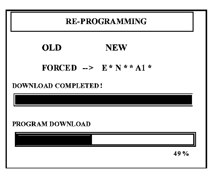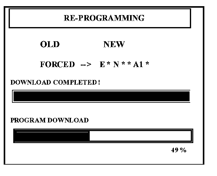 If reprogramming did not complete properly or was interrupted, repeat process using the following procedure.