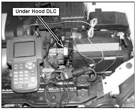 6. Connect Hi-Scan Pro to under hood DLC located near vehicle battery.