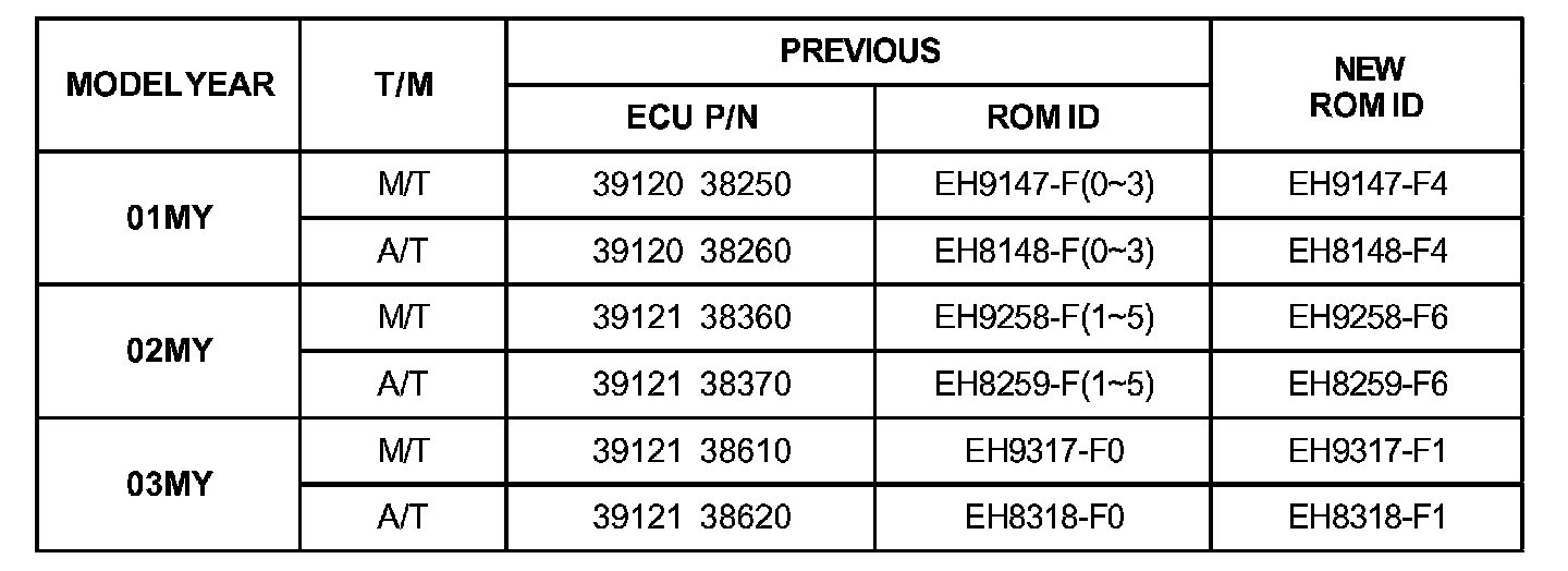 For 2001-2003 Optima 4 cylinder complaint vehicles produced before 5/1/03, the revised parts and ECM logic software has been made available for use as a field fix.