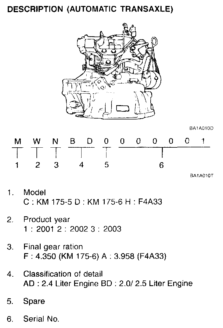 Transaxle Identification Number Location