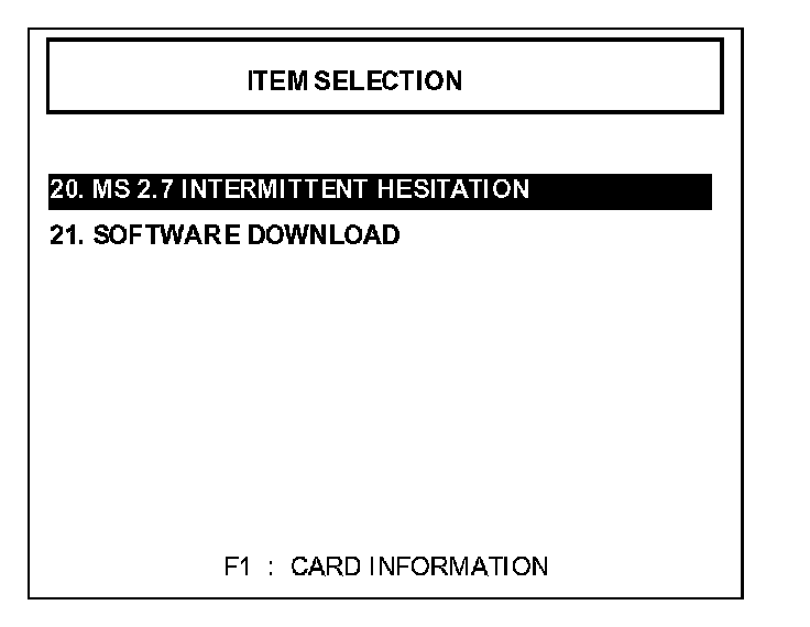3. Select Option "20. MS 2.7 INTERMITTENT HESITATION" and press ENTER.