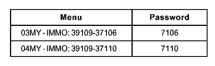 6. From the chart, select and enter the correct password for the manual update mode, then press ENTER.