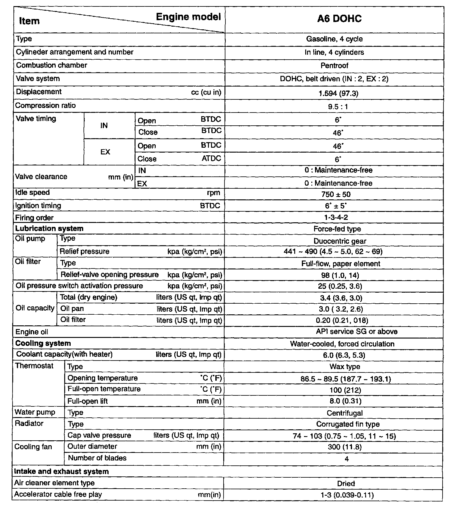 Tightening torque: 4.3 - 6.5 ft. lbs. (5.9 - 8.8 Nm, 0.6 - 0.9 kg-m)