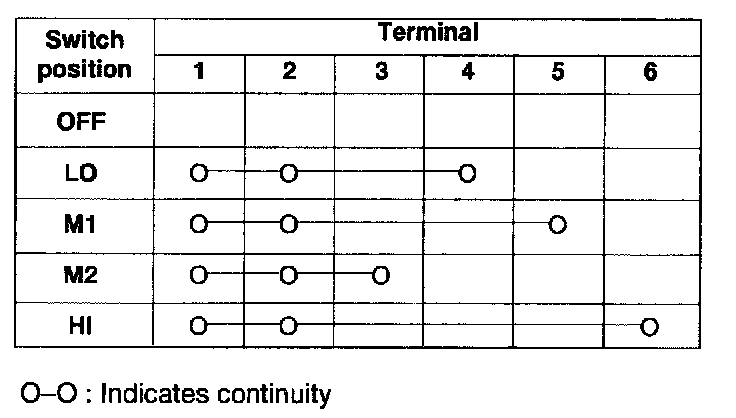 Blower switch1. Check continuity between terminals of blower switch.