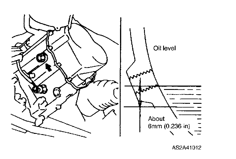 5. Add specified amount and type of oil into oil level plug hole until level reaches bottom of hole.