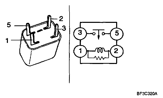 5. Apply battery voltage (B+) to terminal 3 and ground terminal 5 of the relay.