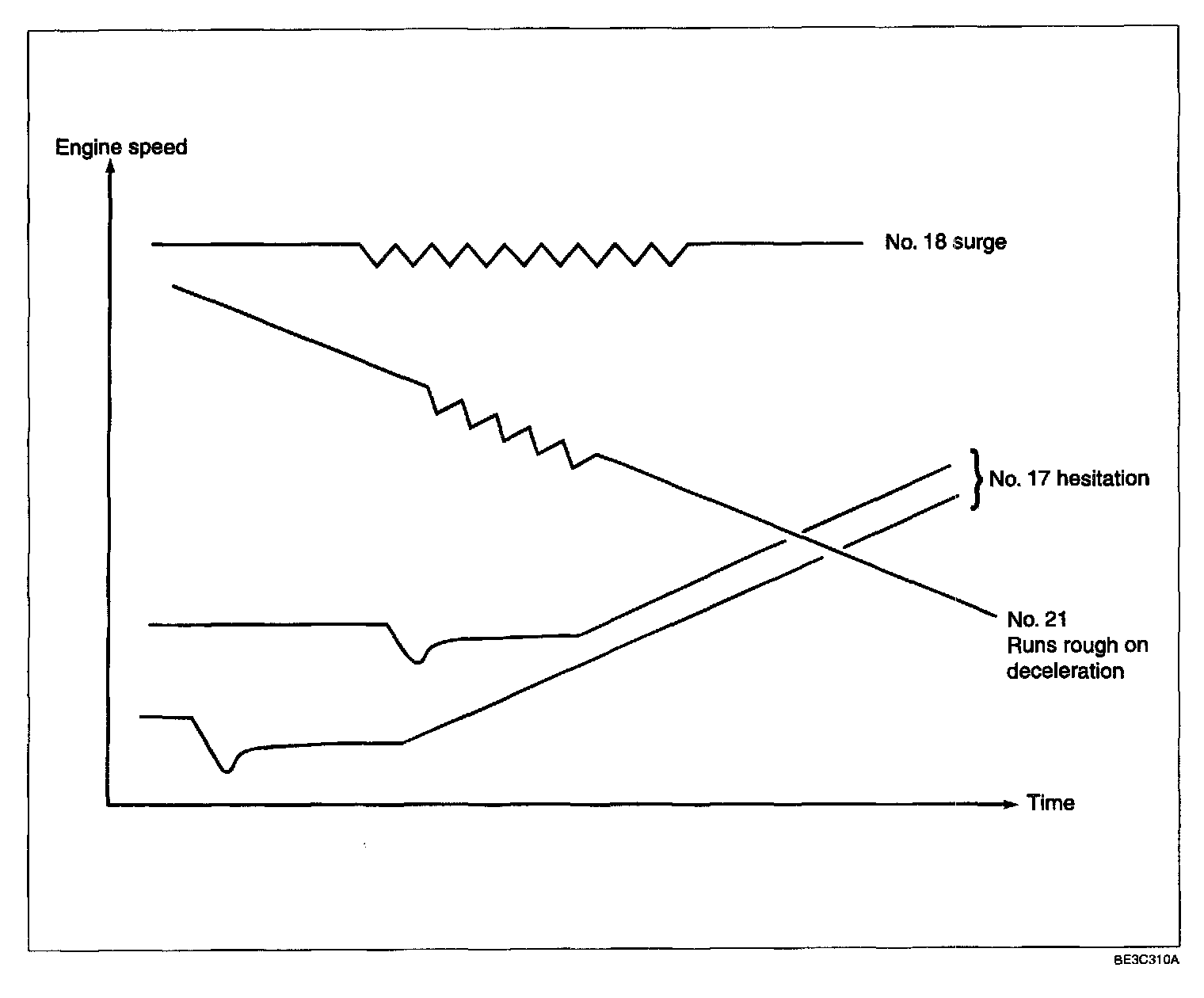 Hesitation: Delay in increase in engine speed occurring just after the accelerator pedal is depressed.
