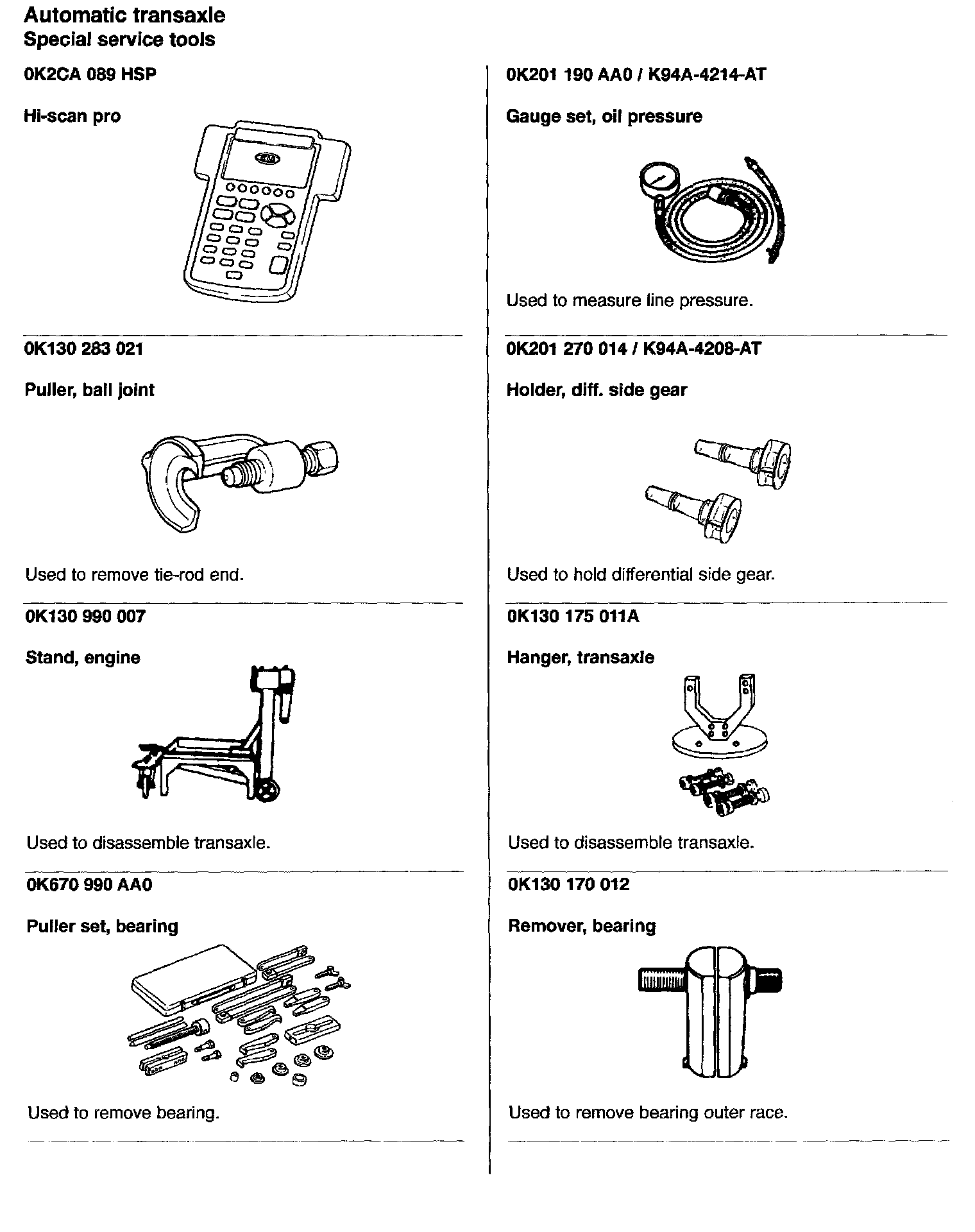 Automatic Transmission/Transaxle: Tools and Equipment