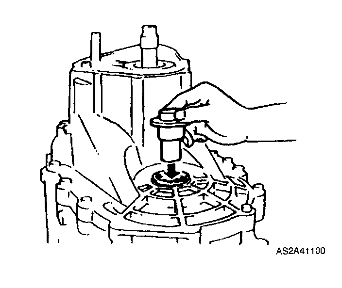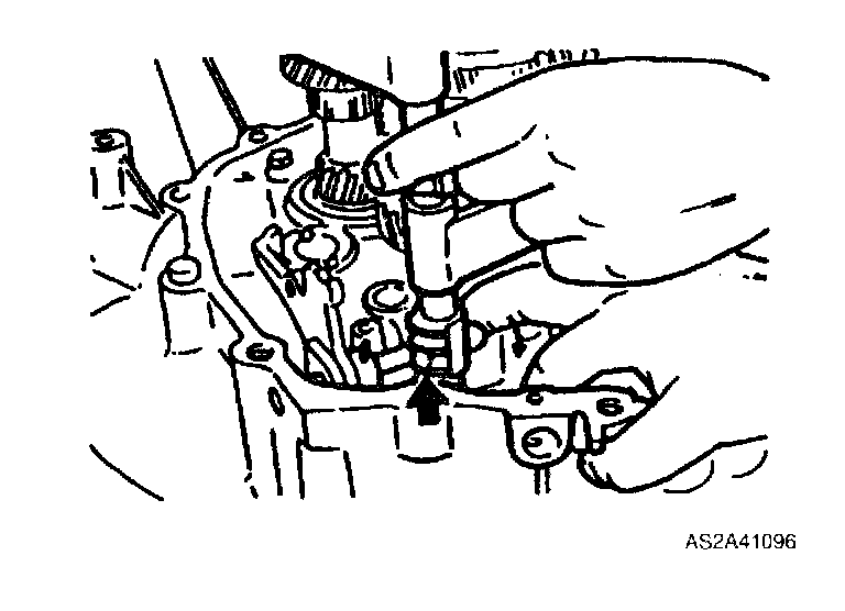 4. Set each clutch hub sleeve to neutral position, and tap shift rod from above so that detent ball goes into center groove (of three grooves in control end).