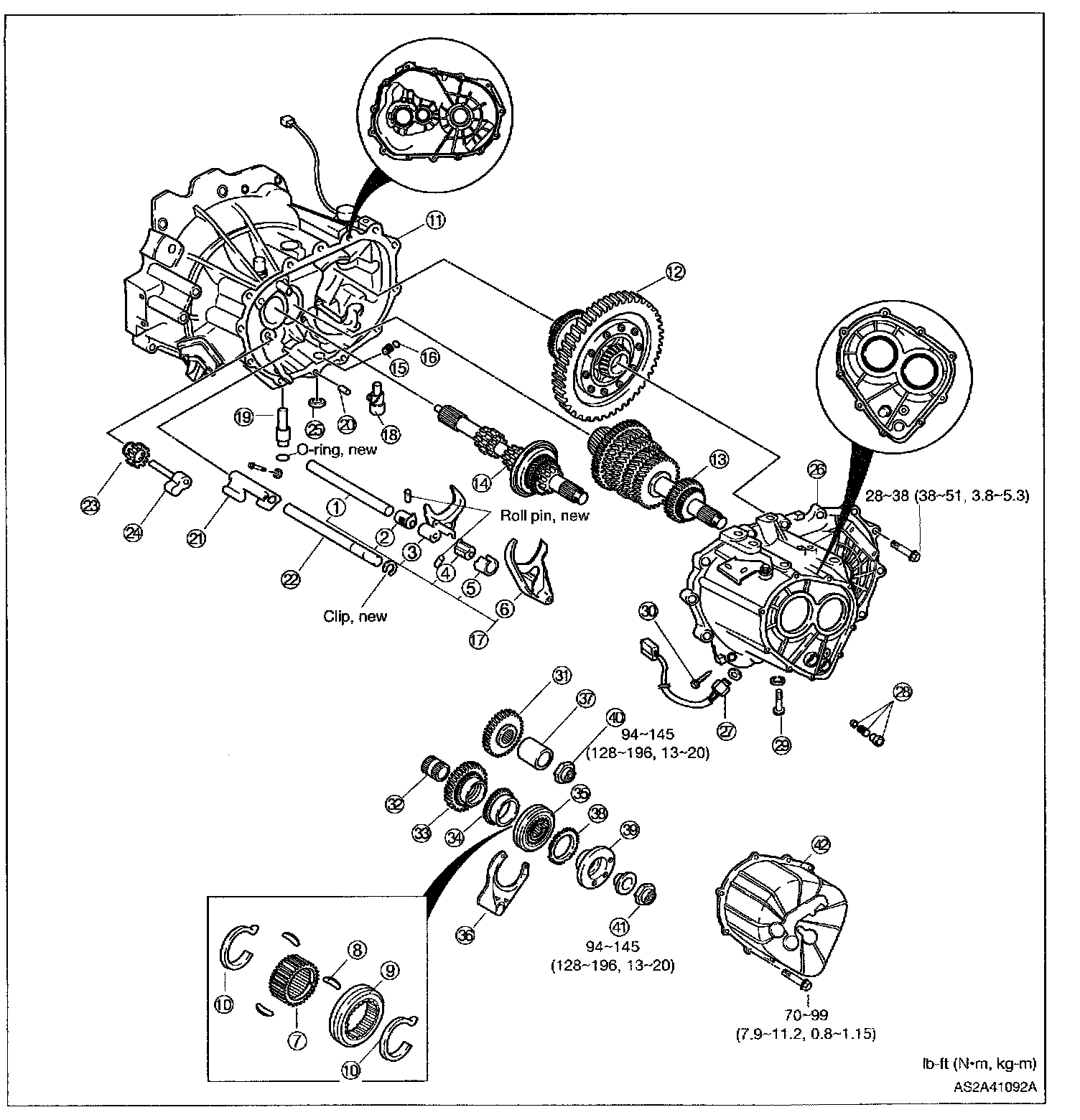 Tightening torque: 28 - 38 ft. lbs. (38 - 51 Nm, 3.8 - 5.3 kg.m)
