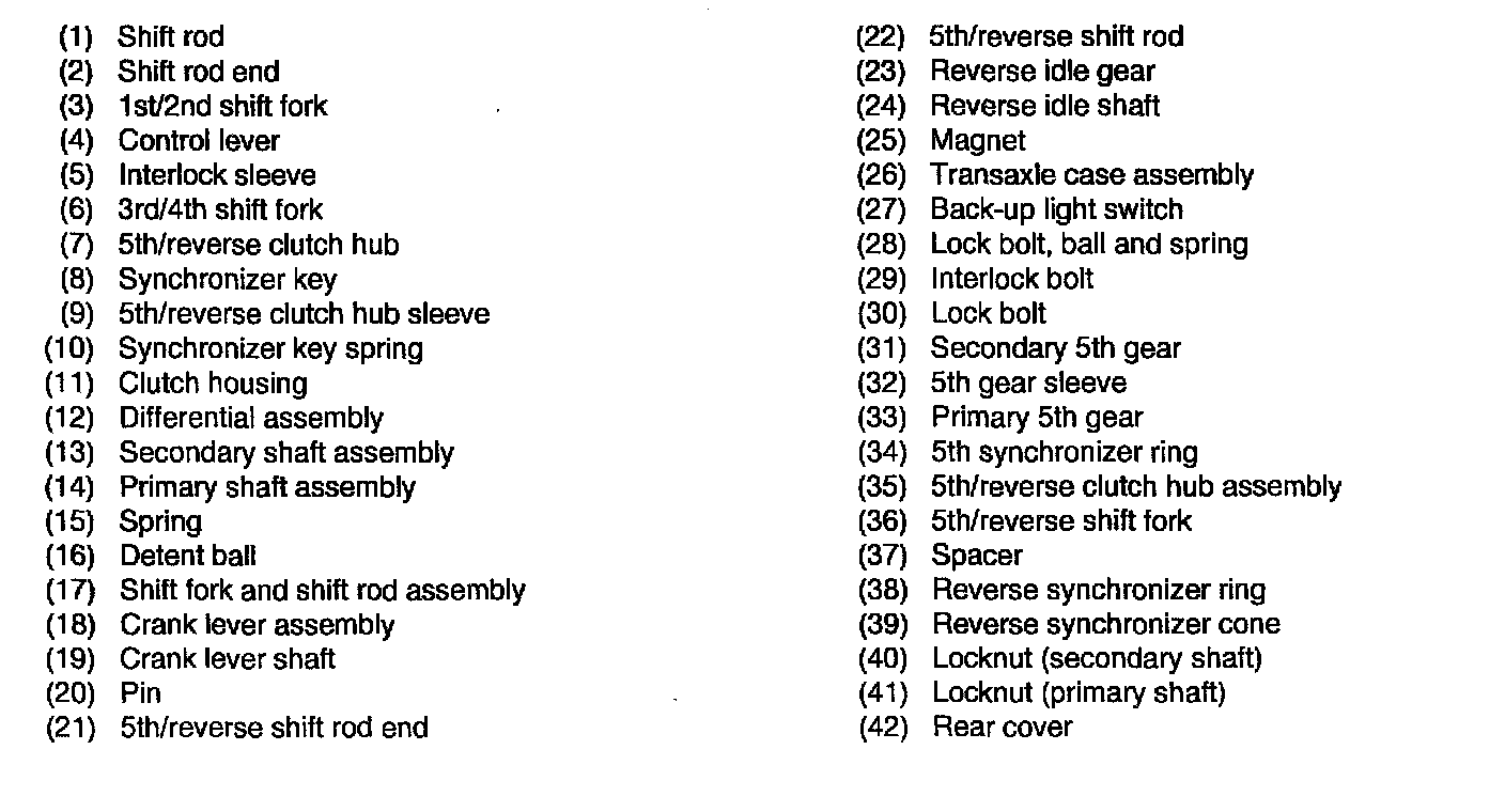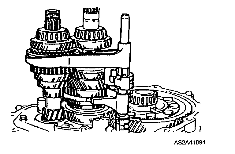 1. Shift to 2nd gear and position shift fork and shift rod assembly as shown.