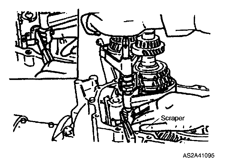 2. Insert spring seat and spring into reverse lever shaft, install detent ball, and place a flat gasket scraper against it.