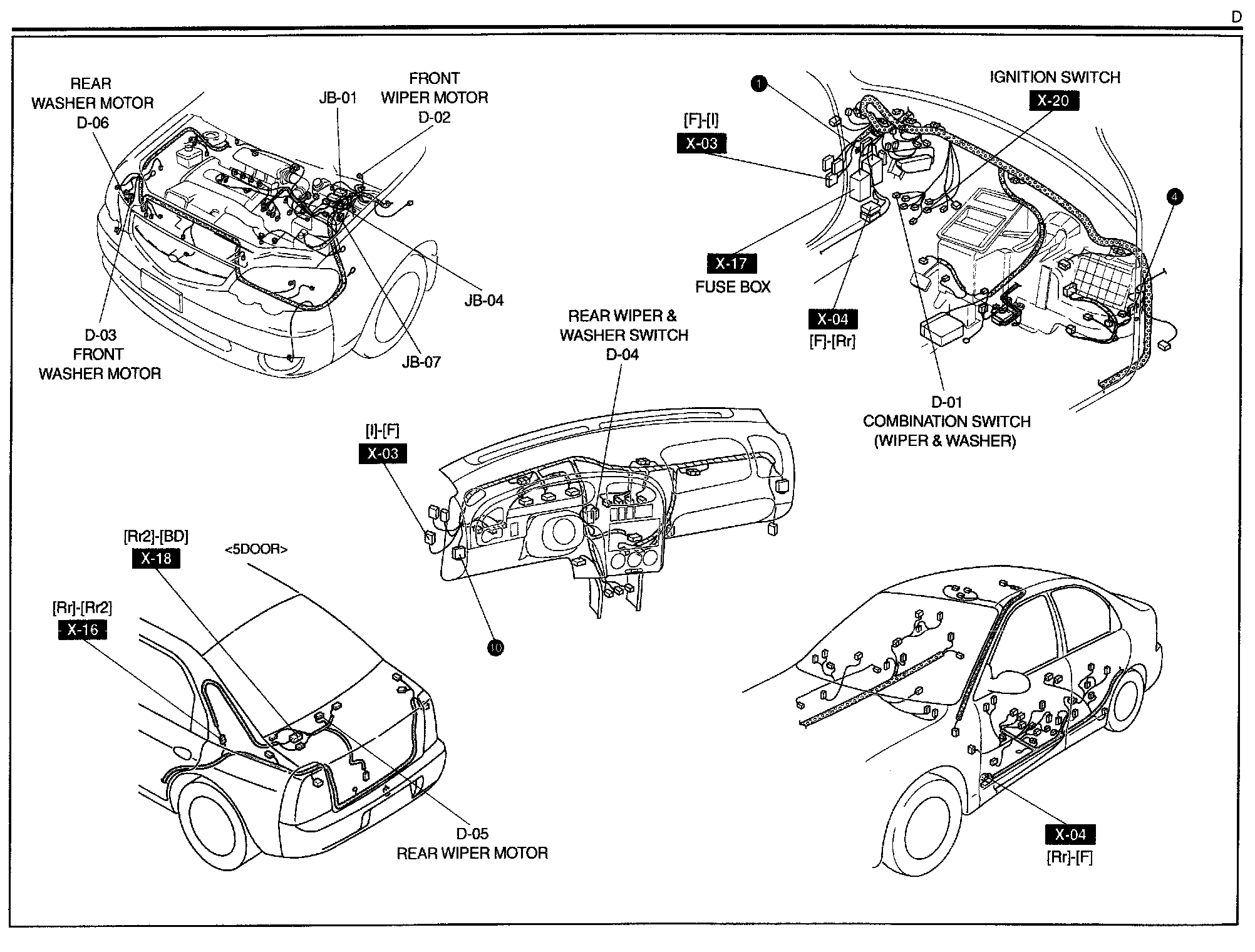 D - Front Wiper & Washer System, Rear Wiper & Washer System Harness / Connectors Symbols:
