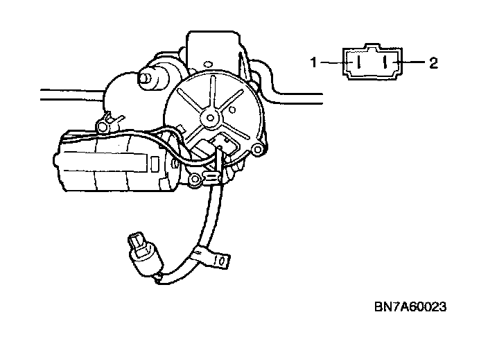 2. Check motor operation by connecting to a 12 V DC source. Connect Terminal 1 to positive and Terminal 2 to negative. Watch to see if motor assembly operates to auto stop position.