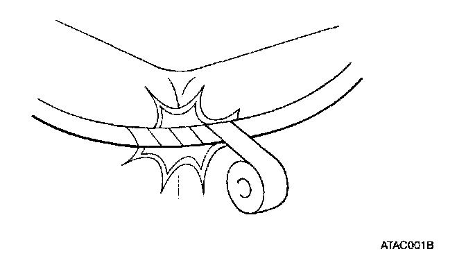 3. If any section of a wiring harness interferes with the edge of a part or a corner, wrap the section of the harness with tape or something similar in order to protect it from damage.