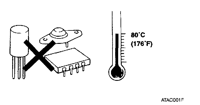 6. The electronic parts used in the computer, relays, etc. are readily damaged by heat. If there is a need for service operations that may cause the temperature to exceed 80 °C (176 °F), remove the electronic parts beforehand.