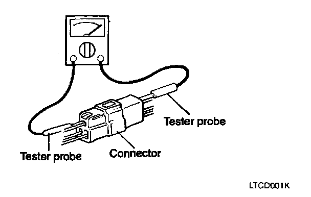11. When using a circuit tester to perform continuity or voltage checks on connector terminals, insert the test probe from the harness side.