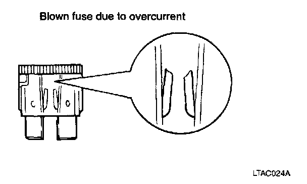 When a fuse is blown, there are two probable causes. The two causes can easily be determined by a visual check after removing the fuses.