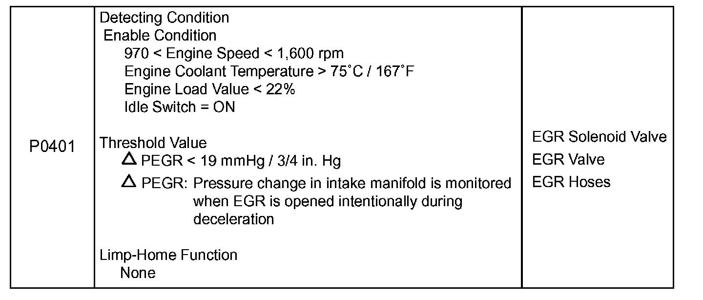 Amanti Exhaust Gas Recirculation (EGR) DTC P0401 Information