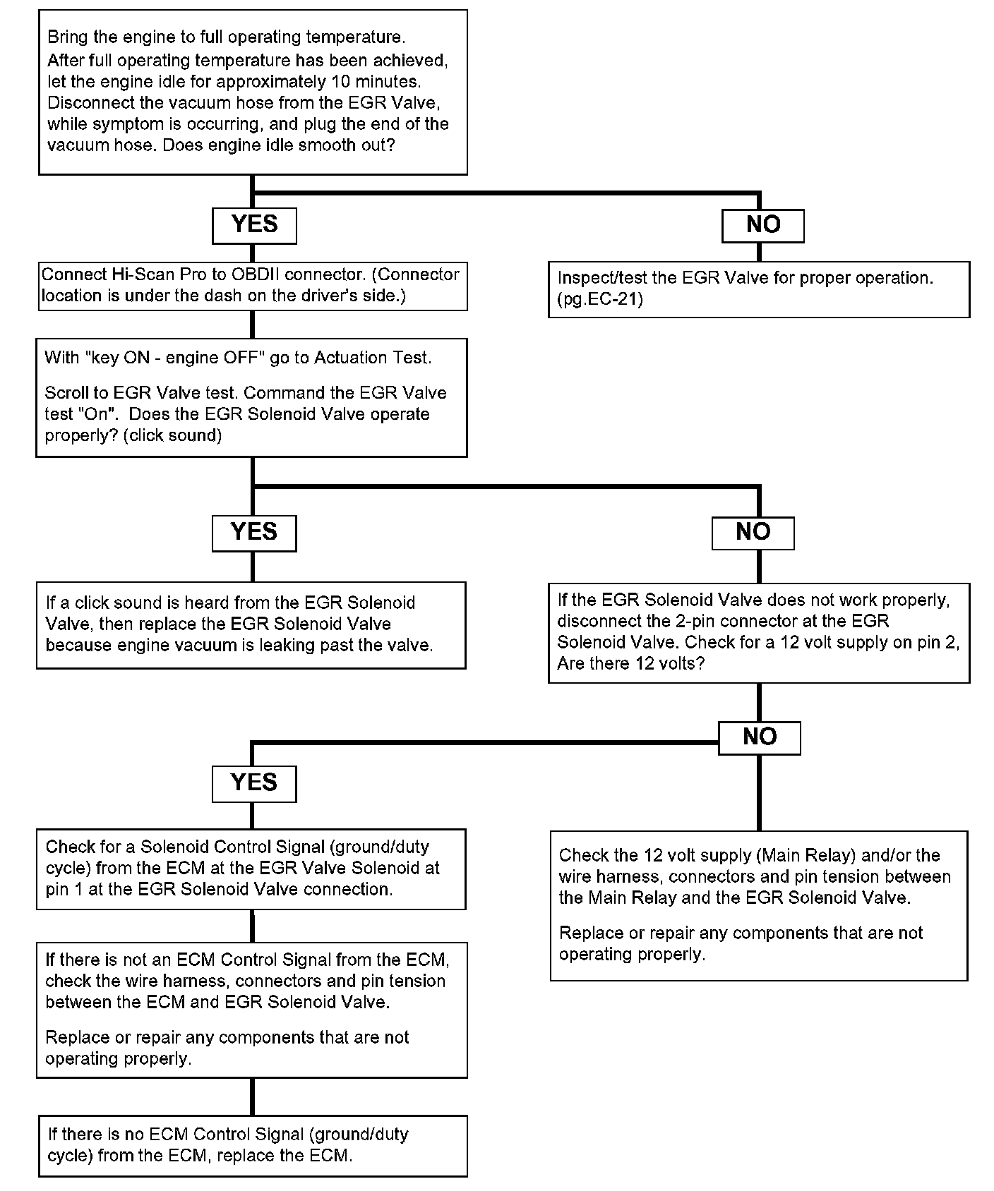 Specifications (Resistance): 29.0 35.0 OHMS (at 20 degrees Celsius I 68 degrees Fahrenheit). If resistance is out of specifications, replace the EGR Solenoid Valve. If the EGR Solenoid Valve is good, continue Diagnostic Procedure.