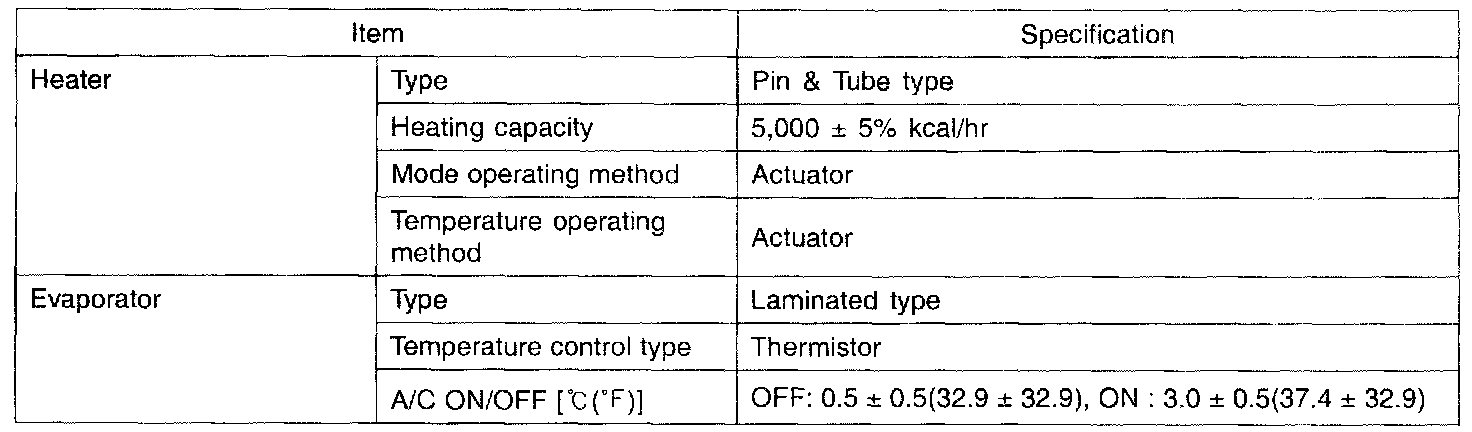 General Specification - Heater And Evaporator Unit: