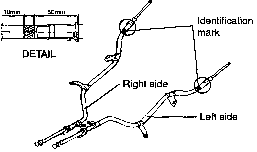 1. Check the parking brake cables for an identification mark paint or wind tape and install as appropriate on the left and right sides.