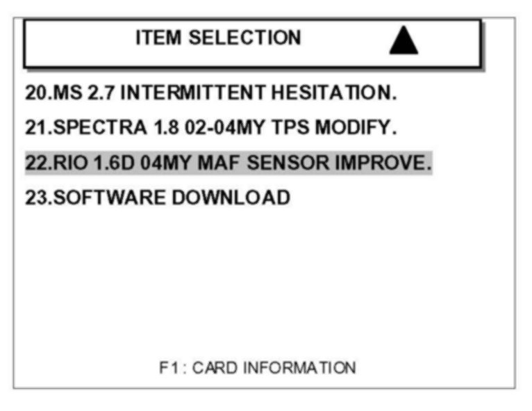 3. Select option "22.RIO 1.6D 04MY MAF SENSOR IMPROVE." and press "ENTER."