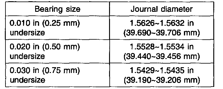 CRANK PIN JOURNAL DIAMETER UNDERSIZES