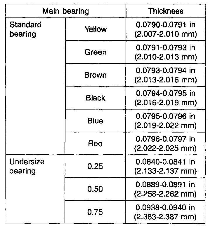 Oil Clearance: 0.0007 - 0.0014 inch (0.018 - 0.036 mm)