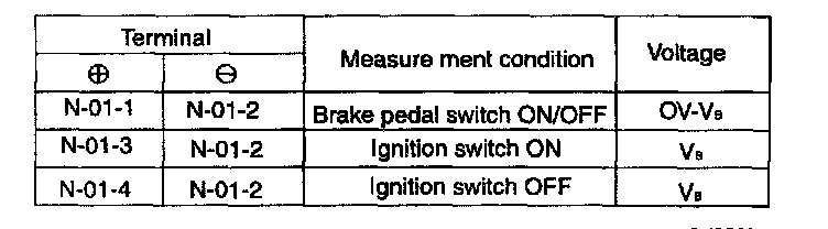 3. Verify that the selector lever isn't shifted from P range to any other position with not applying the brake pedal.