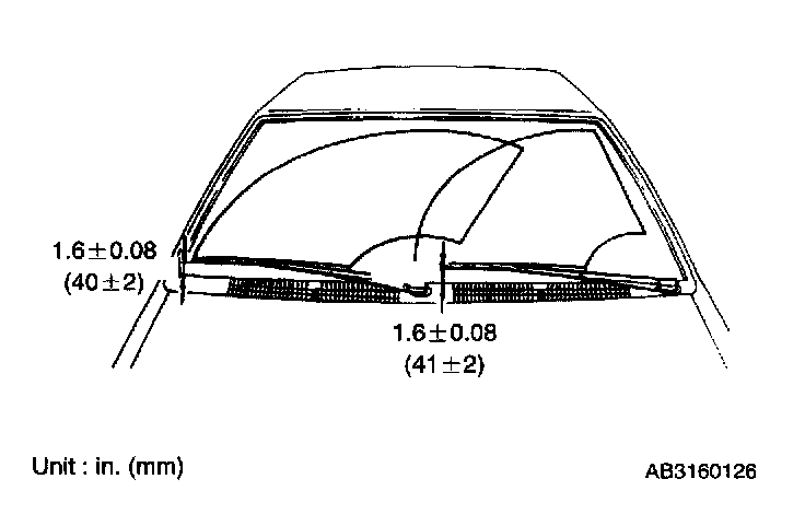 7. Check system movement. Wiper arms should stop 1.6 inch (41 mm) (Driver side) and 1.6 inch (40 mm) (Passenger side) from lower windshield edge.