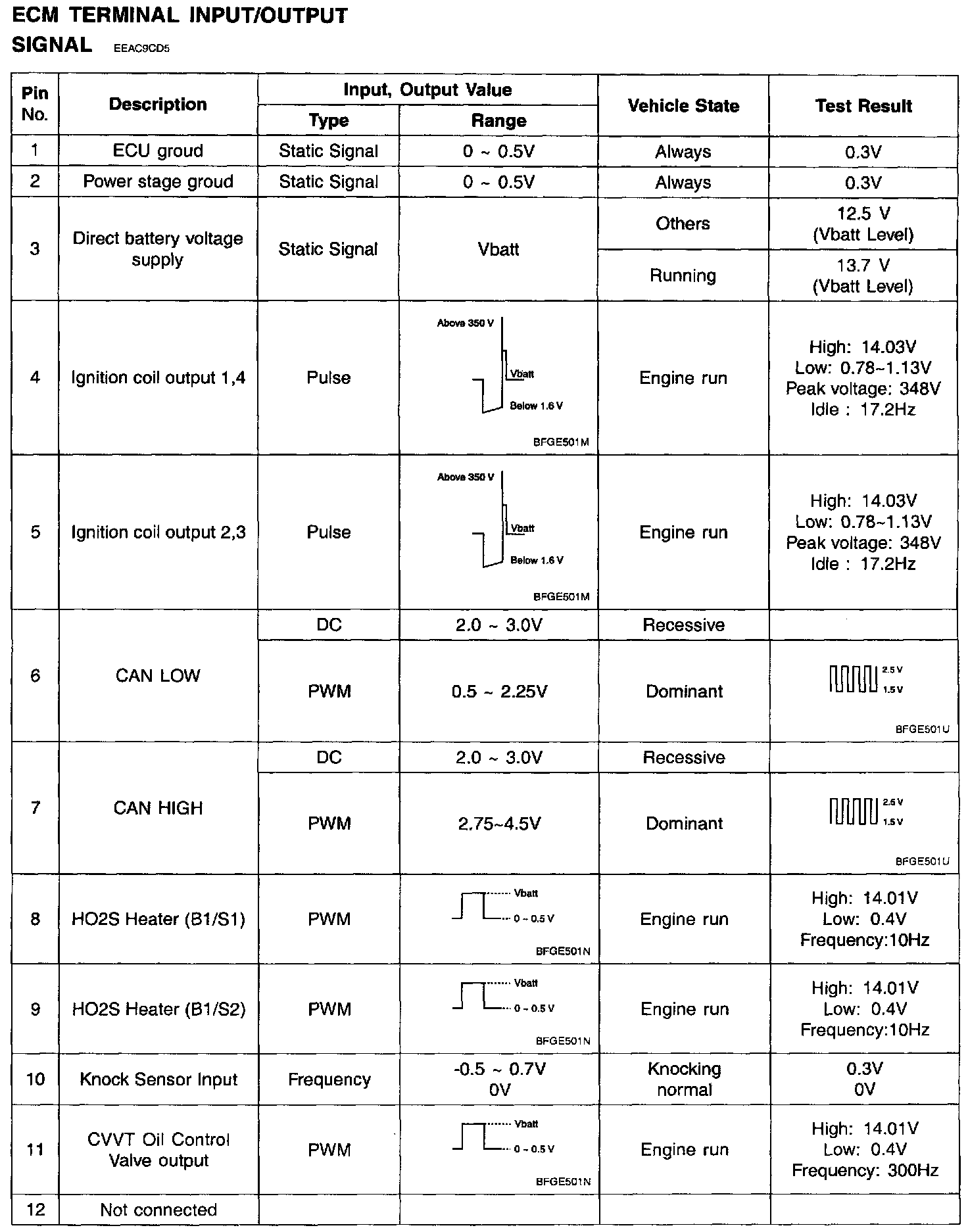 Pin No. 1 - 12: