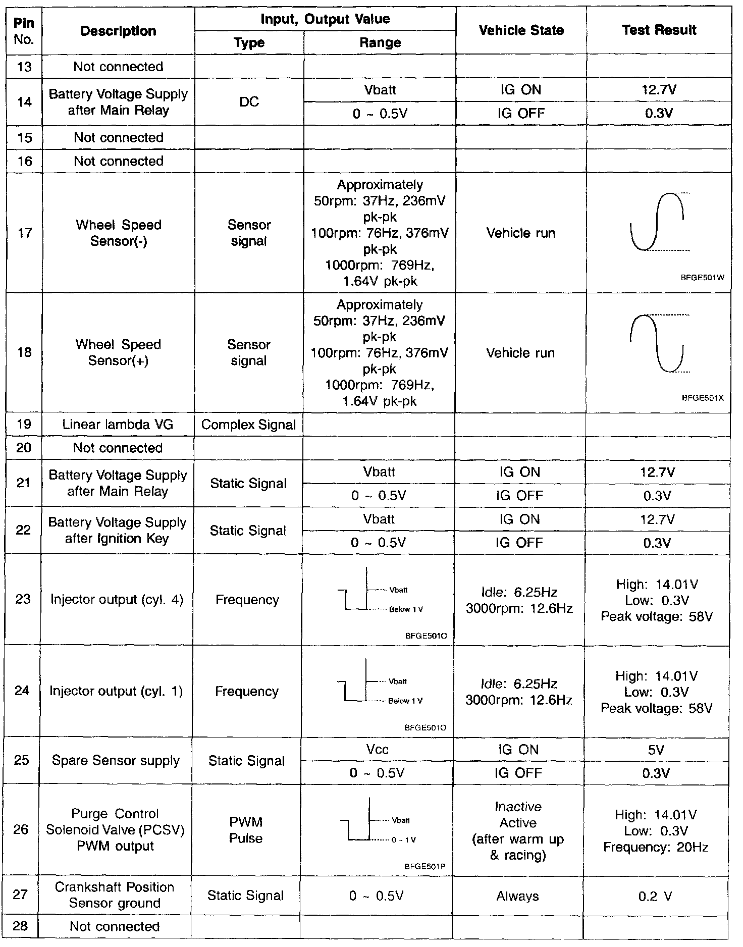 Pin No. 13 - 28: