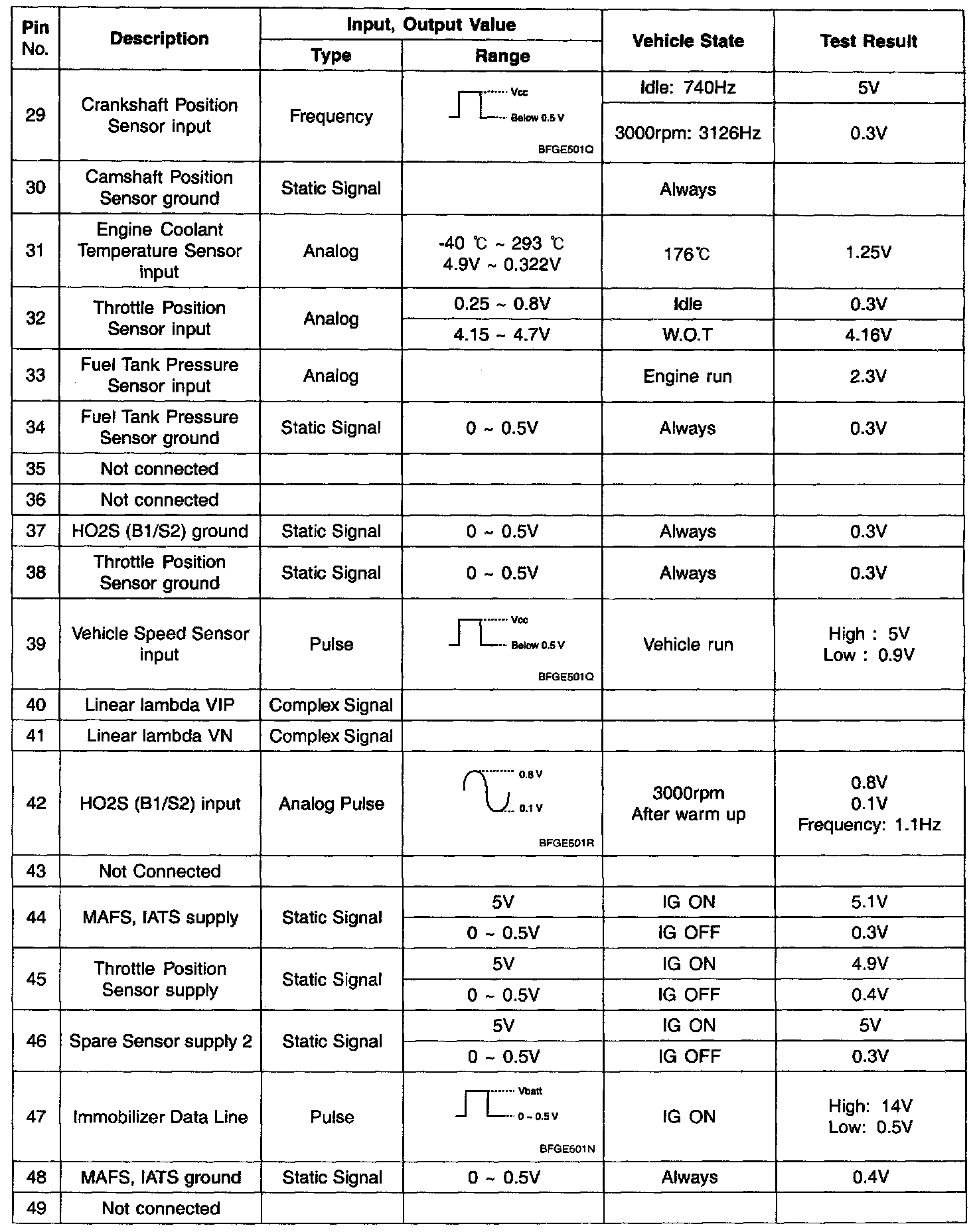 Pin No. 29 - 49: