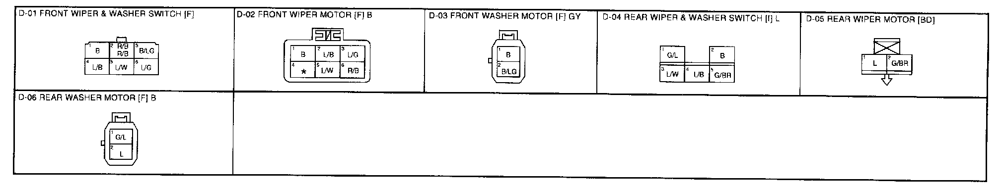 D - Front Wiper & Washer System, Rear Wiper & Washer System Connectors: