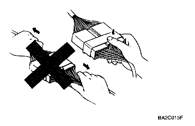 1. Never pull on the wiring harness when disconnecting connectors.