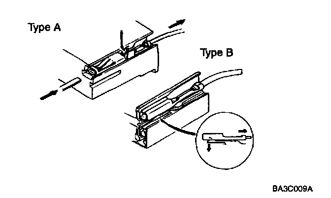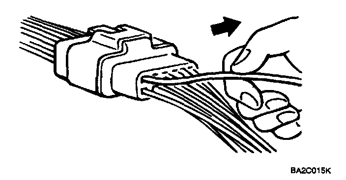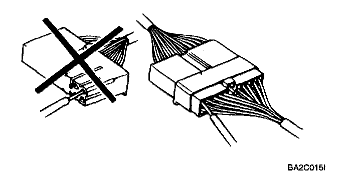 1. When a tester is used to check for continuity or to measure voltage, insert tester probe from wire harness side.
