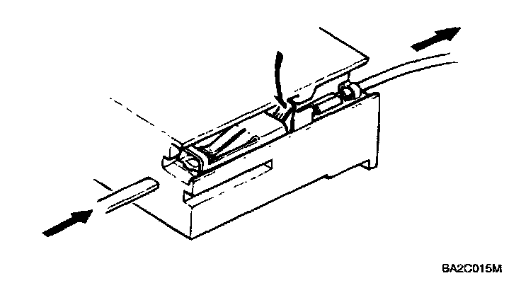 Insert a thin piece of metal from the terminal side of the connector, and then, with the terminal locking tab pressed down, pull the terminal out of the connector.