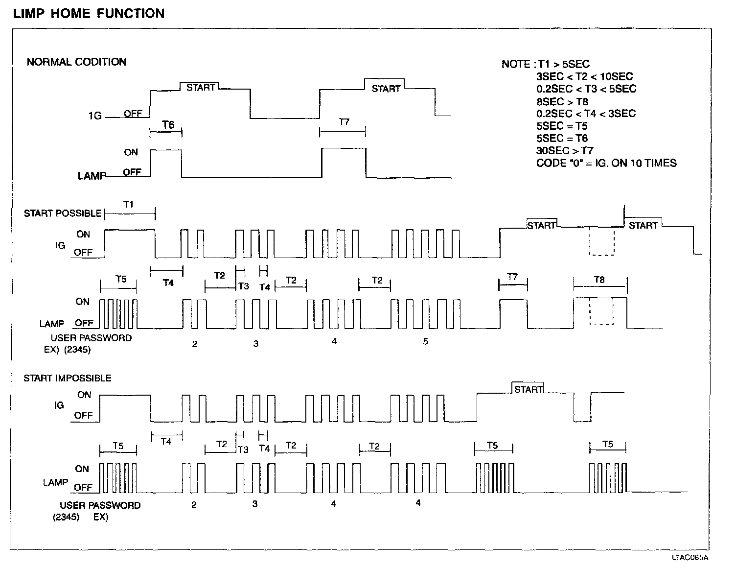 The "limp home" mode can also be activated using the ignition key. The user password can be input to the ECM by using a special ignition sequence (ON/OFF).